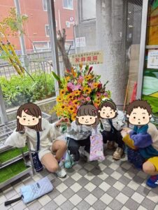 最初はいただいたお花の前で記念撮影